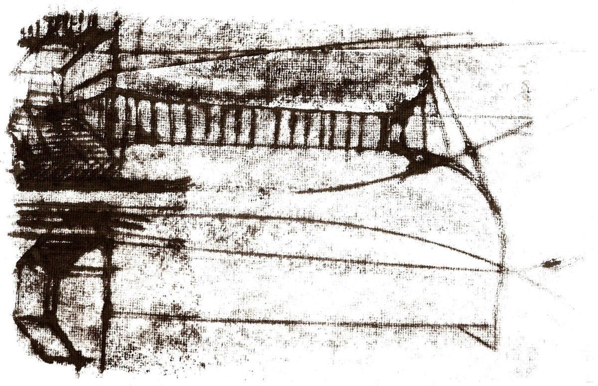 Para abordar o problema do abandono das fábricas nesse país sem reforma agrária ele produziu uma série de monotipias “feitas com facas a partir do xirê de Ogum. Toda a produção foi assim. São azuis. Imagens que sangram”.