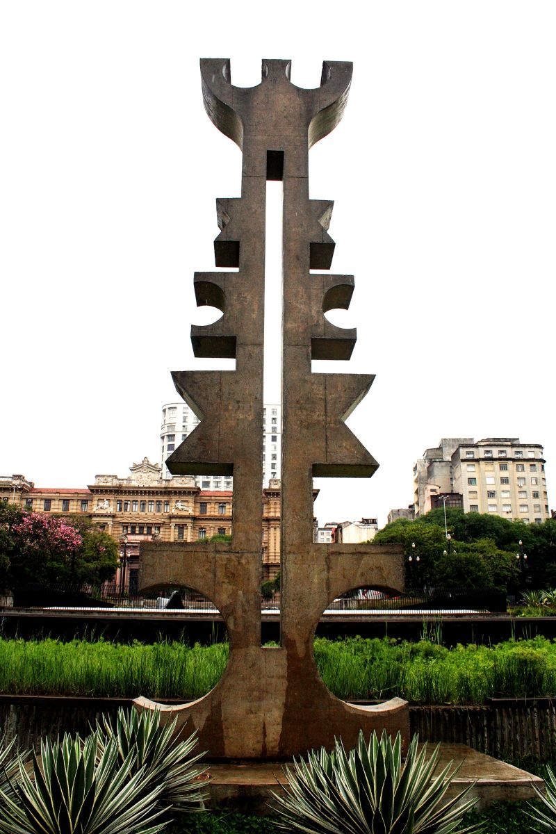 No misticismo do candomblé, Xangô é o orixá da justiça que possui um machado com lâminas duplas. Este machado e outros símbolos dos orixás são recorrentes em suas obras. A escultura é como um totem, ponto de referência, obra para todos que por ali passam. Ao valorizar a matriz africana presente no candomblé e traduzi-la numa composição escultórica pública, Valentim nos convida a perguntar sobre nossas origens como povo. A arte foi sua forma de resposta e o que fez foi lutar com “todas as forças para ser mais humano e mais tolerante nesta época de insólita violência”.