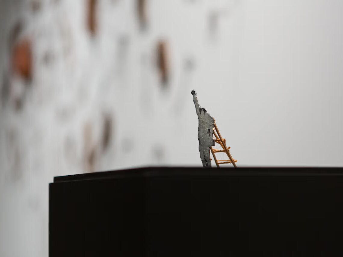 Pequena também é a pintura Cadeira calçada, do artista goiano Dalton Paula. A escolha por essas dimensões está alinhada à antiga prática dos ex-votos, meio pelo qual os católicos pagam a um santo um milagre alcançado por meio de representações visuais bi ou tridimensionais. Na cultura material do catolicismo popular negro e nas religiões afro-brasileiras, as cadeiras agem acolhendo reis e rainhas coroados em folguedos populares, sacerdotes de terreiros nela tomam assento e, não raro, estão interditadas a pessoas não autorizadas. Do modo como é tratada por Paula, a cadeira fica frágil, pois o que a sustenta são copos de vidro, o que faz com que só possam manter a si mesma, jamais acolher um corpo. Nesse sentido marcam uma ausência.